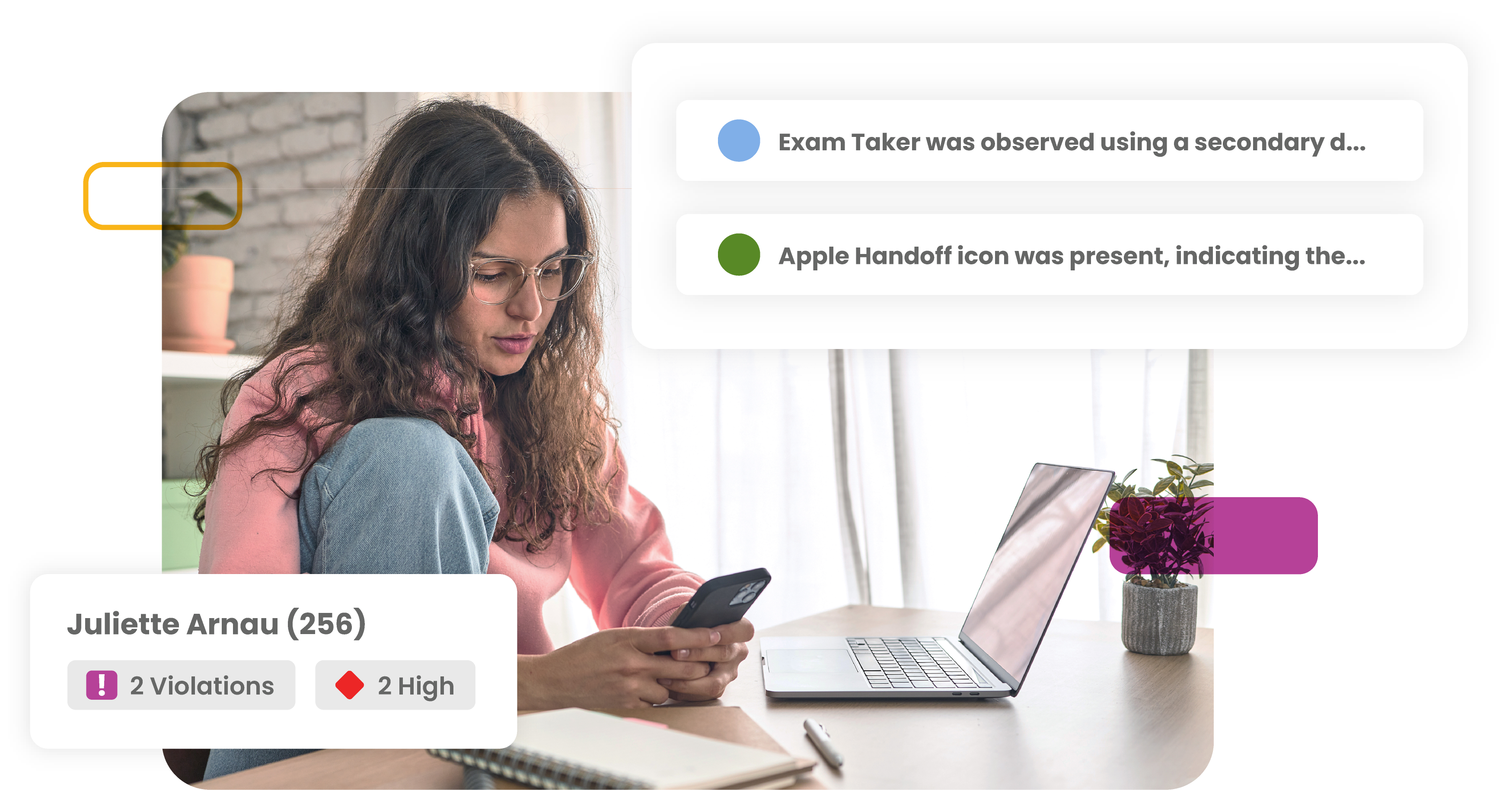 Instead of hoping a live proctor sees a cell phone in real-time, Honorlock’s cell phone detection toolkit combines multi-device monitoring, Apple Handoff detection, and advanced AI to detect cell phones, smartwatches, and other secondary devices more effectively than any competitor.